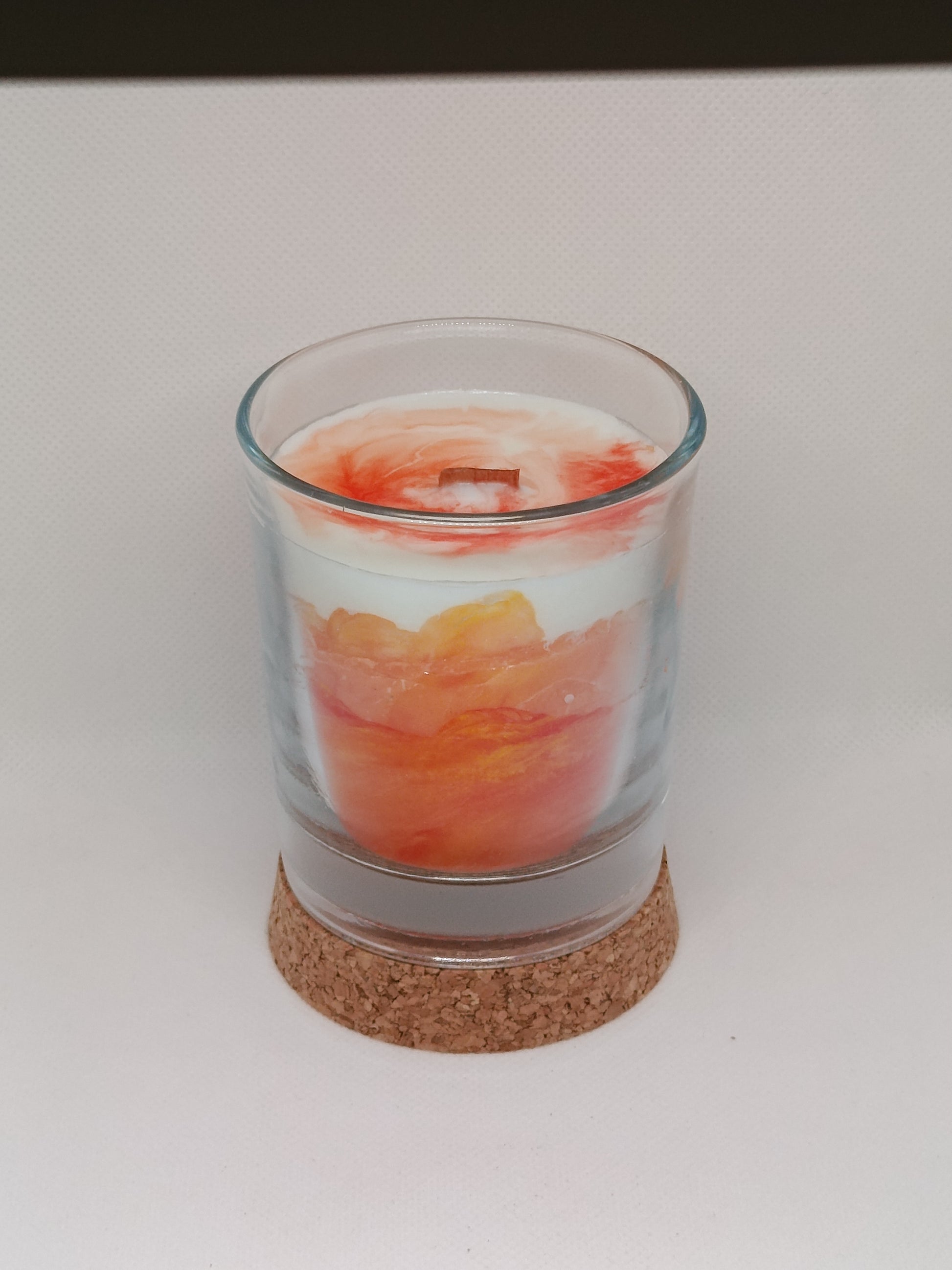 Descubre nuestra vela artesanal en vaso de vidrio, diseñada para aportar calidez, estilo y bienestar a cualquier espacio. Cada vela es única, con un elegante efecto marmoleado que convierte cada pieza en una pequeña obra de arte.